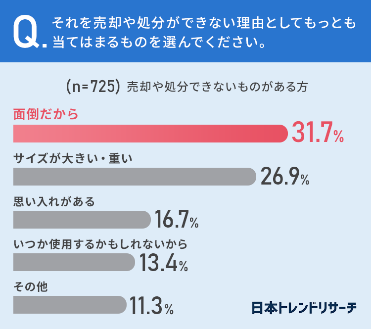 【不用品】売却や処分したくてもできない理由、16.7%が「思い入れがあるから」