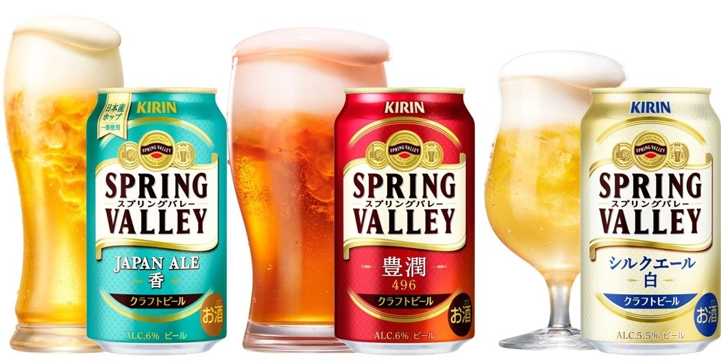 フラッグシップ商品「SPRING VALLEY 豊潤<496>」の中味をリニューアルし、おいしさをさらに進化させるとともに、定番3品「SPRING VALLEY 豊潤<496>」・「SPRING VALLEY シルクエール<白>」・「SPRING VALLEY JAPAN ALE<香>」のパッケージを刷新します。