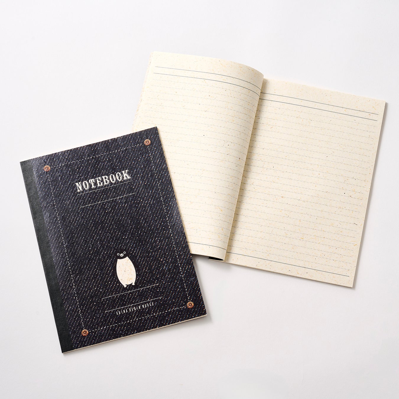 表紙にはバガスデニムのプリント。表紙と中紙共にバガス配合の紙を使用。環境に配慮しつつ、Suicaのペンギンが中央にデザインされた大人っぽい一冊です。