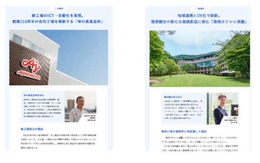 本県を選んだ経緯や地域との連携などを交えた、企業のサクセスストーリーをインタビュー形式で発信。