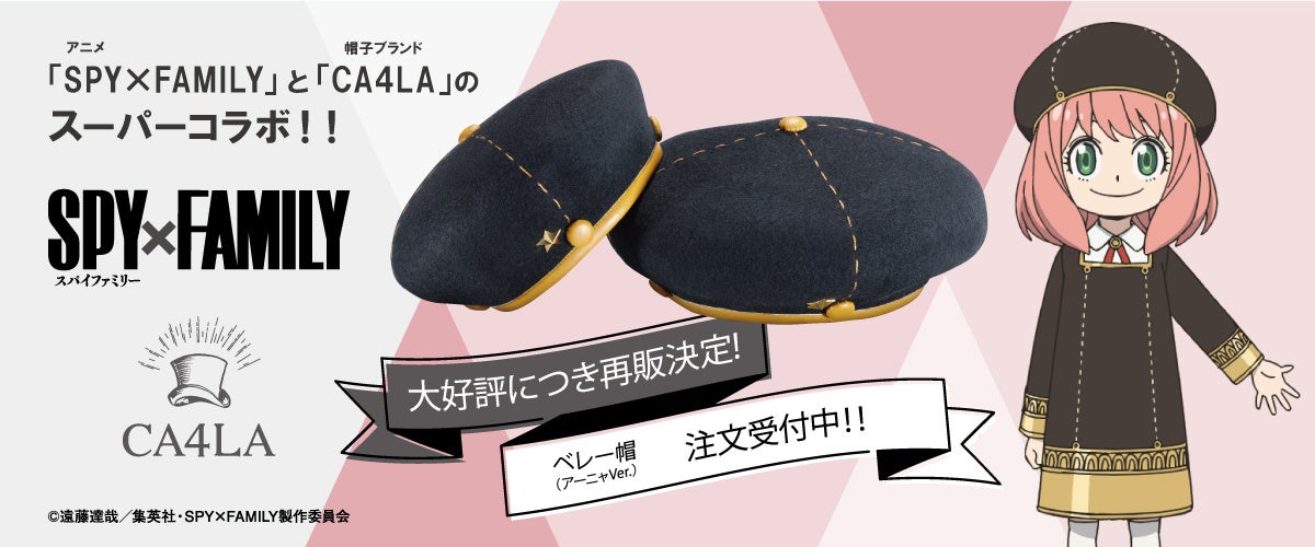 大好評につき再々販決定! 大人気アニメ「SPY×FAMILY」と帽子ブランド「CA4LA」のスーパーコラボ、ベレー帽(アーニャVer.)予約受付開始!