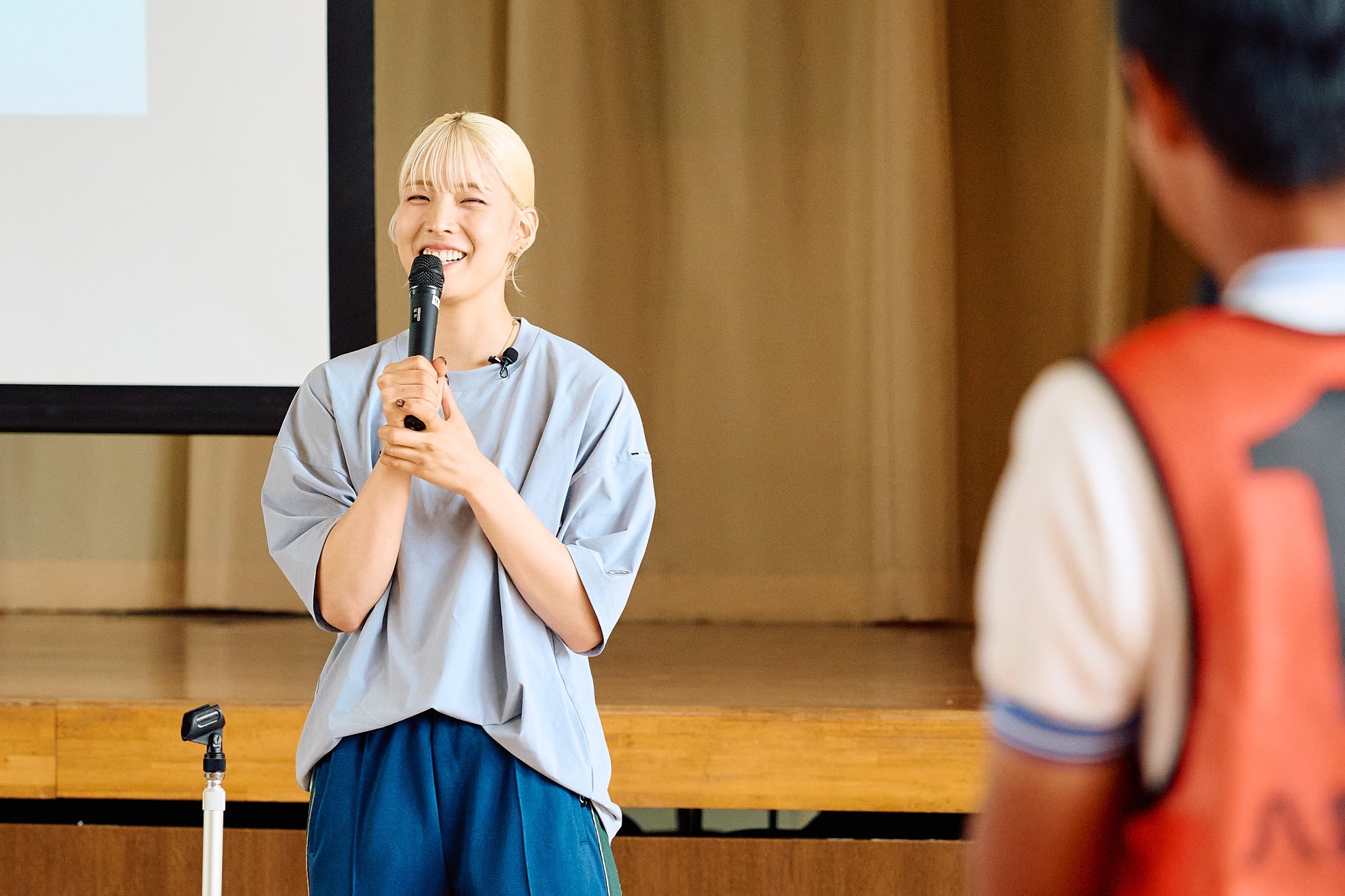 メガネのZoff出張授業は、コロナ禍による子どもたちのデジタルデバイス接触時間の増加や、紫外線対策の意識の高まりを受け、子どもたちの目の健康をサポートするために、目の仕組みや目の健康について考えるプログラムです。メガネのZoff出張授業と江村美咲選手による講演を合わせた特別授業は初の取り組みです。