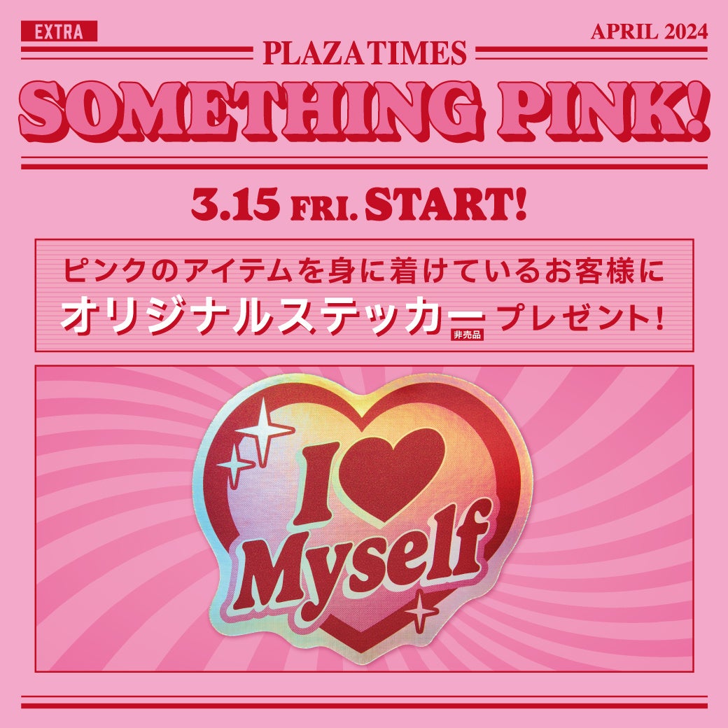 “SOMETHING PINK!”、PINKカラーのアイテムを身につけてPLAZAに行こう!3月15日(金)から全国のPLAZA・MINiPLAにて、PINKカラーのアイテムをお召しの方・お持ちの方に、「オリジナルステッカー」(非売品)をプレゼントします。わたしたちにパワーをくれるPINKのステッカーでいつでも自分らしくいられるように、「自分を愛するあなた」を応援する“I LOVE Myself”とデザインしています。