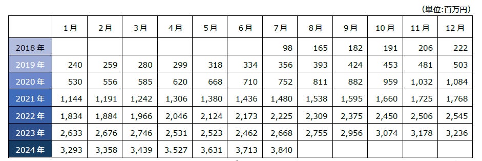 (注)決済手段により3か月毎に1か月の日数(通常月は28営業日、特別月は35営業日)に変動があること、四半期決算期末月毎に決算調整を行っていること等から、月次では金額が変動するため、3か月移動平均を採用しております。