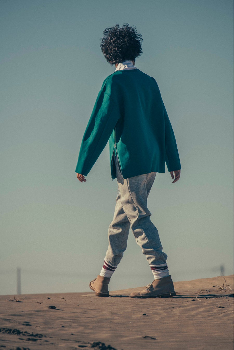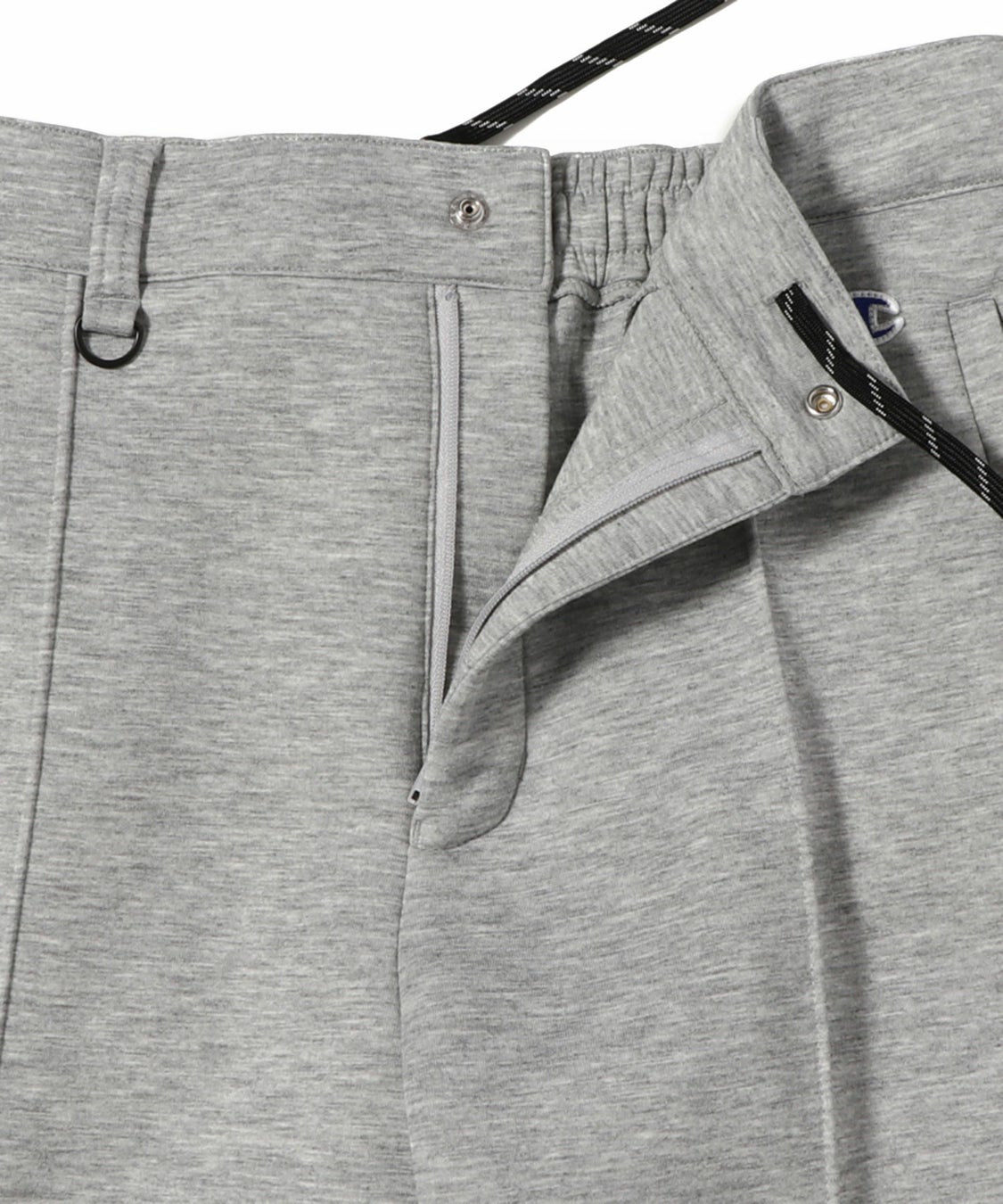センタークリース入り、スラックス型ジャージーパンツを別注にて発売。