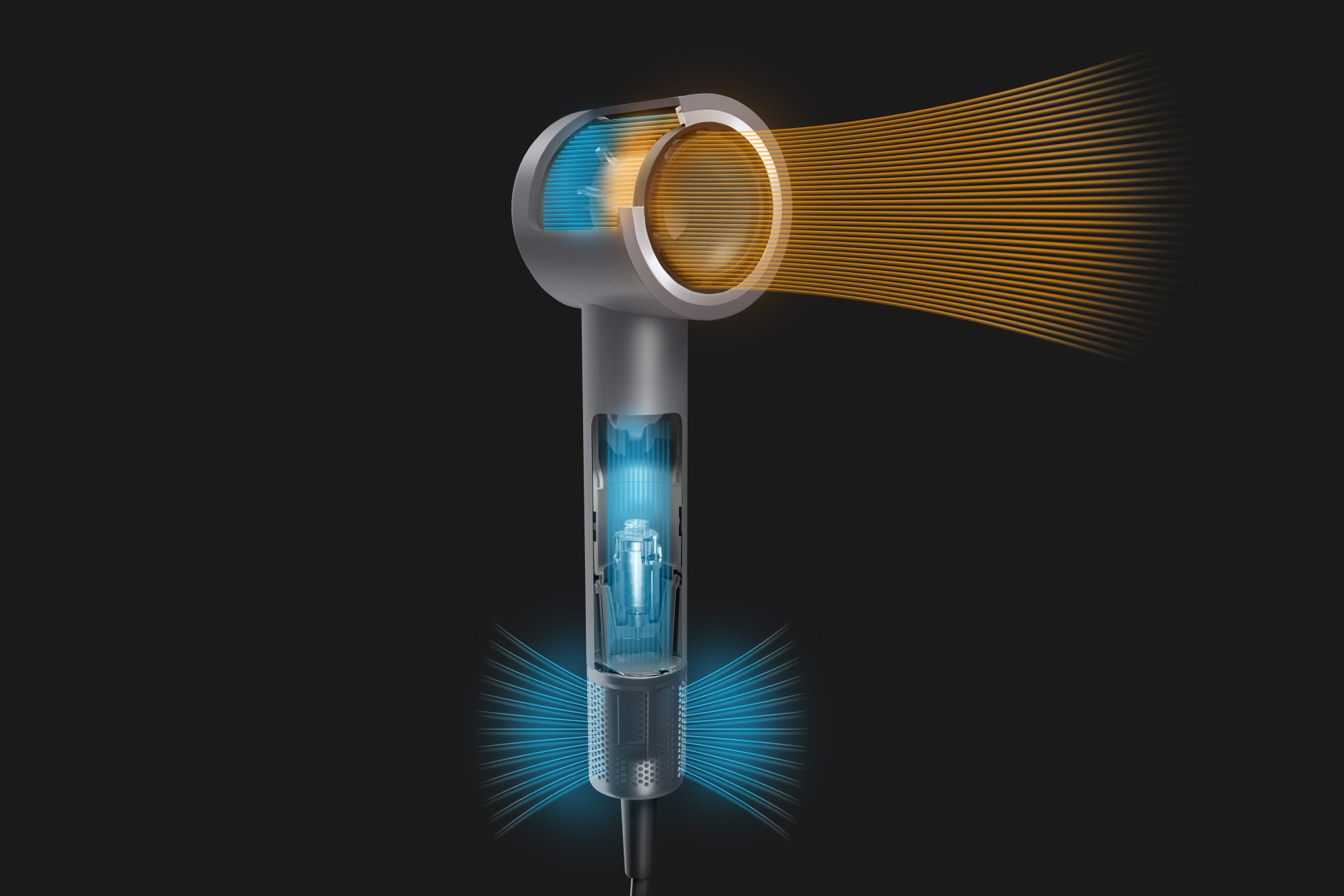 根元から一気に乾かすことで、超速乾を実現し、髪へのダメージを抑えます。