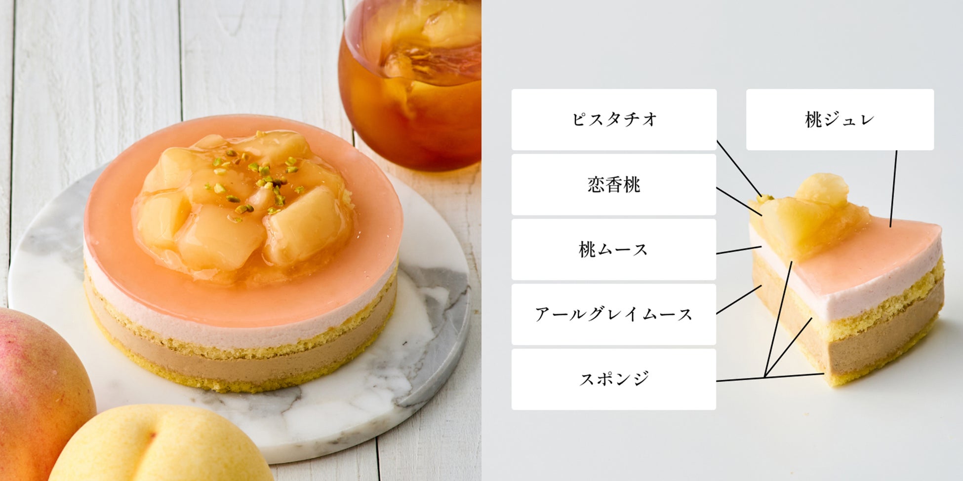 桃の爽やかな甘さと香り高い紅茶の味わいが調和した新作スイーツは期間限定でのご用意。
