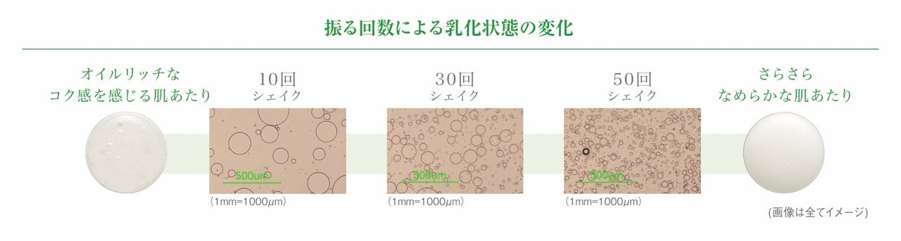 オイル層と、水系エッセンス層の2層式で、使用前に振って混ぜることで、なめらかにのび広がる“できたて”のテクスチャーを実現します。肌にのせた瞬間、ふんわりと軽やかに広がり、乾燥などでゆらぎがちな肌をやさしく包み込むような使用感。季節の変わり目にも心地よく寄り添い、うるおいとツヤを与えます。