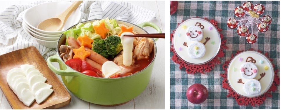 <のび~るモッツァレラのトマト鍋> <スノーマンミルクプリン>