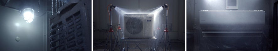 エオリアは、開発時に実使用より厳しい環境で1000を超える品質試験を実施しています。このたび公開したエオリア「品質試験」WEBムービーでは、試験の一例として、極寒や暴風暴雨を想定した室外機の耐久試験や、累計10年分のホコリと油を吸引して行うフィルターお掃除機能の性能試験など、様々な検証をご紹介しています。