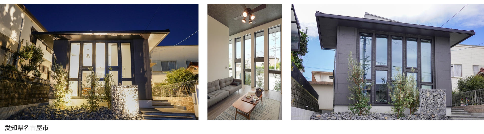 受賞コメント:非日常を日常に取り込む住まいを目指し、道路面に大開口を設けて採光と開放感を確保。植栽や門塀で外部からの視線を遮りました。