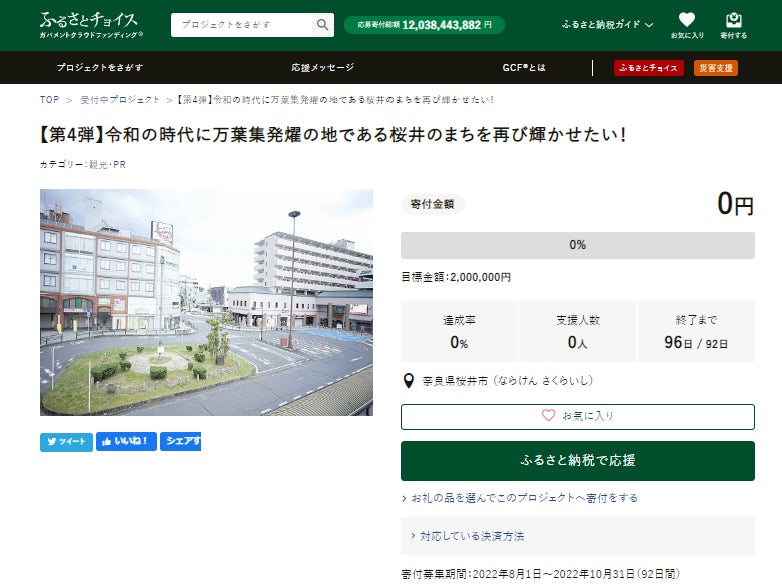 奈良県桜井市とふるさとチョイス、ふるさと納税制度を活用したガバメントクラウドファンディング®で、桜井市の玄関口「桜井駅前」活性化のため200万円の資金調達を開始