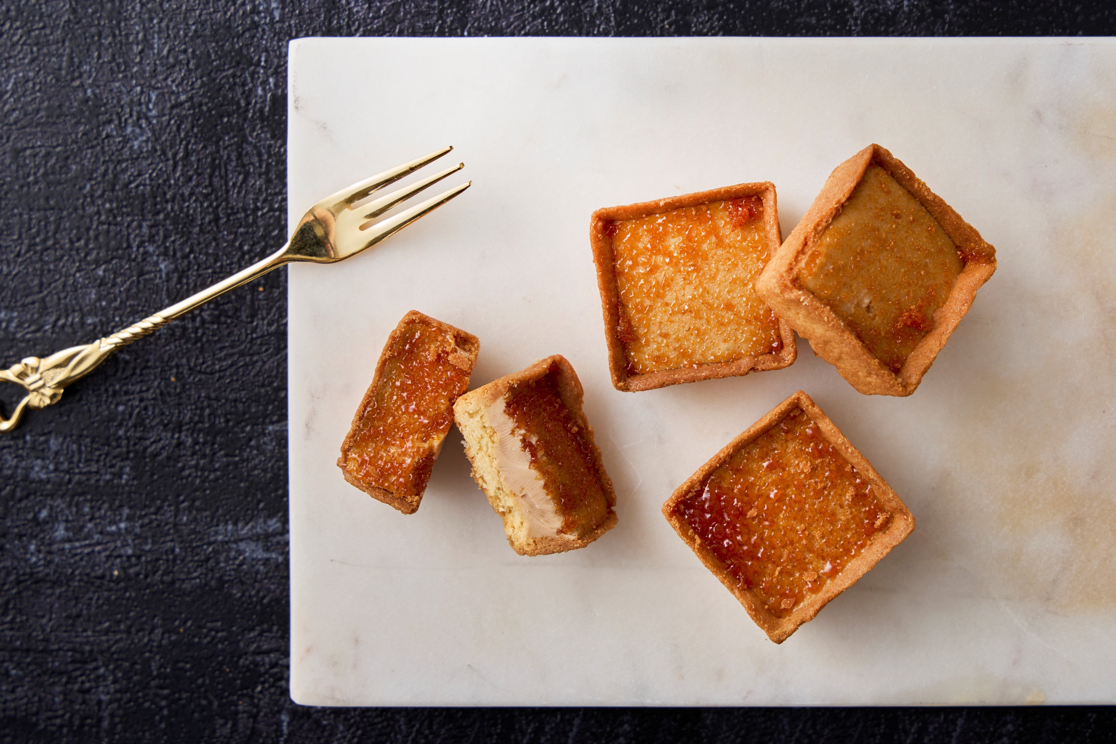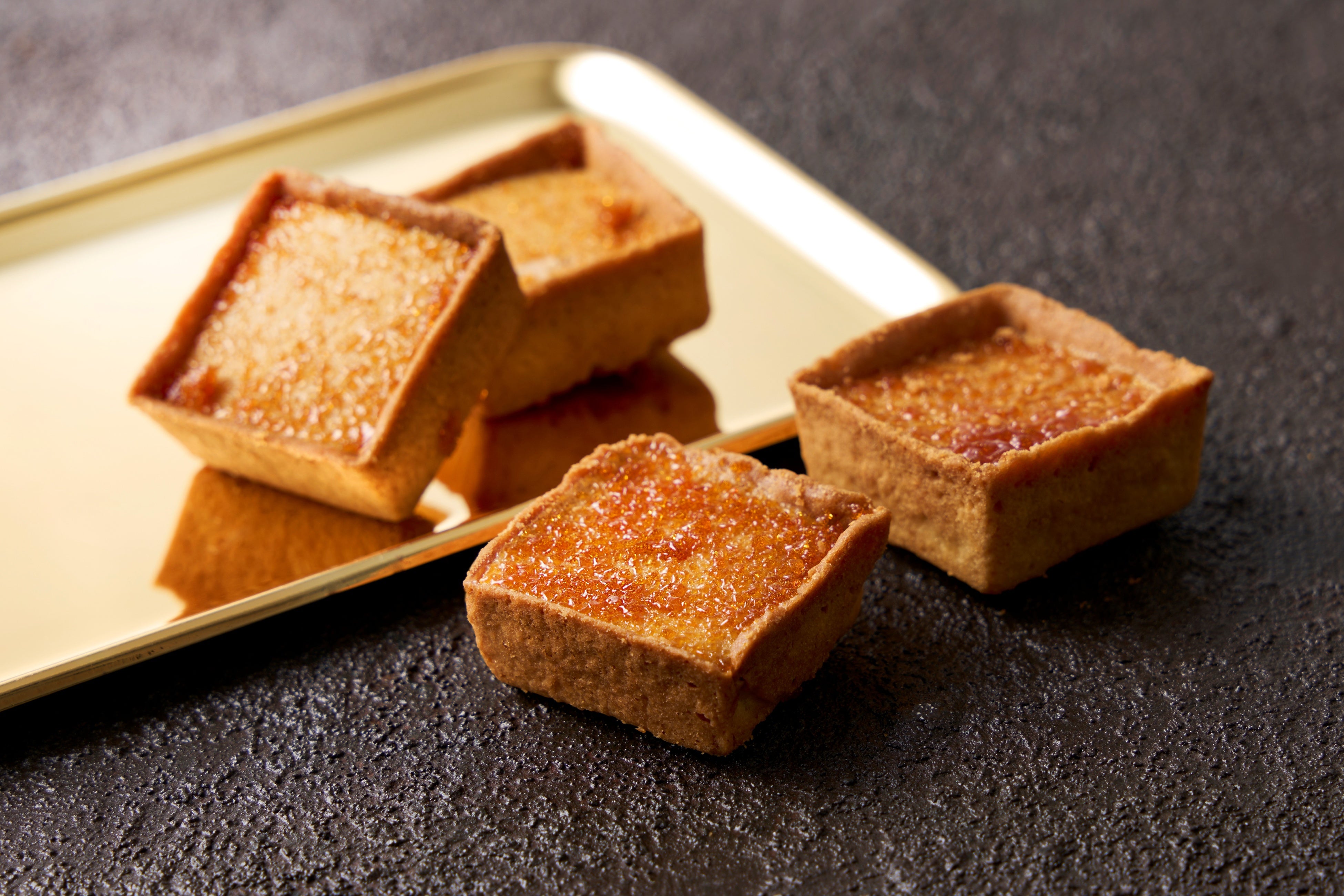 スタイリッシュなスクエア型のタルトに、濃厚でなめらかなキャラメルチョコレートを贅沢に流し込みました。表面にはパリッとした食感のキャラメリゼクランチをまぶし、ほろ苦さと甘みの絶妙なバランスを演出しました。