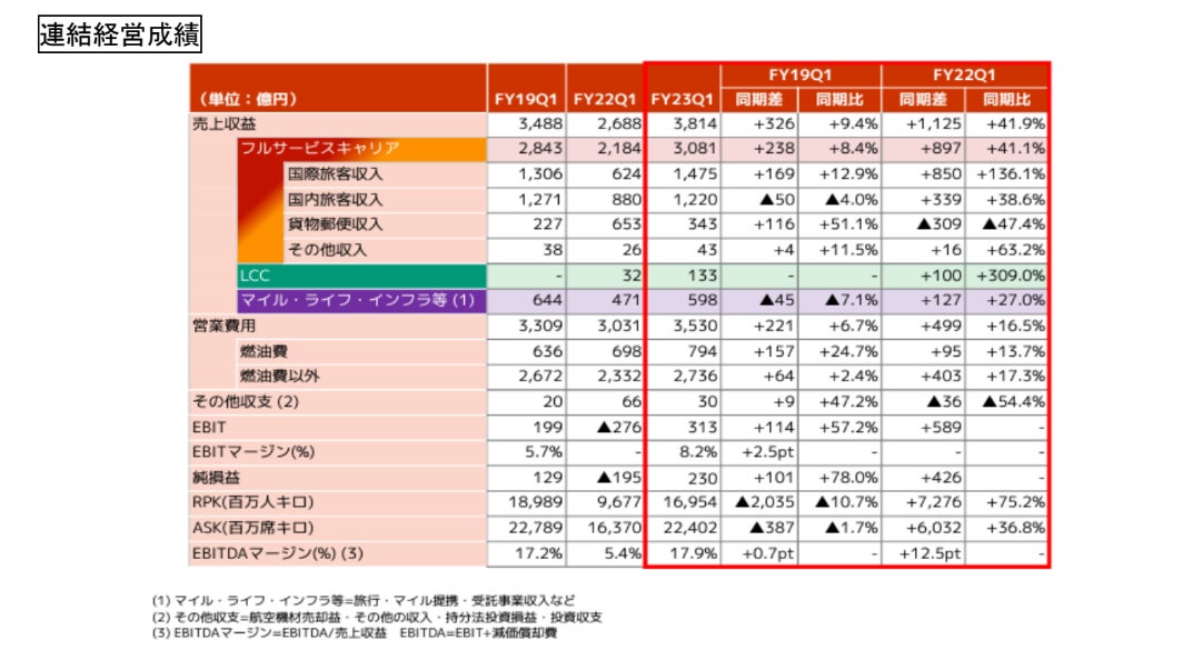 ・回復する旅客需要を着実に取り込み、19年度第1四半期比においても増収・増益となりました。
