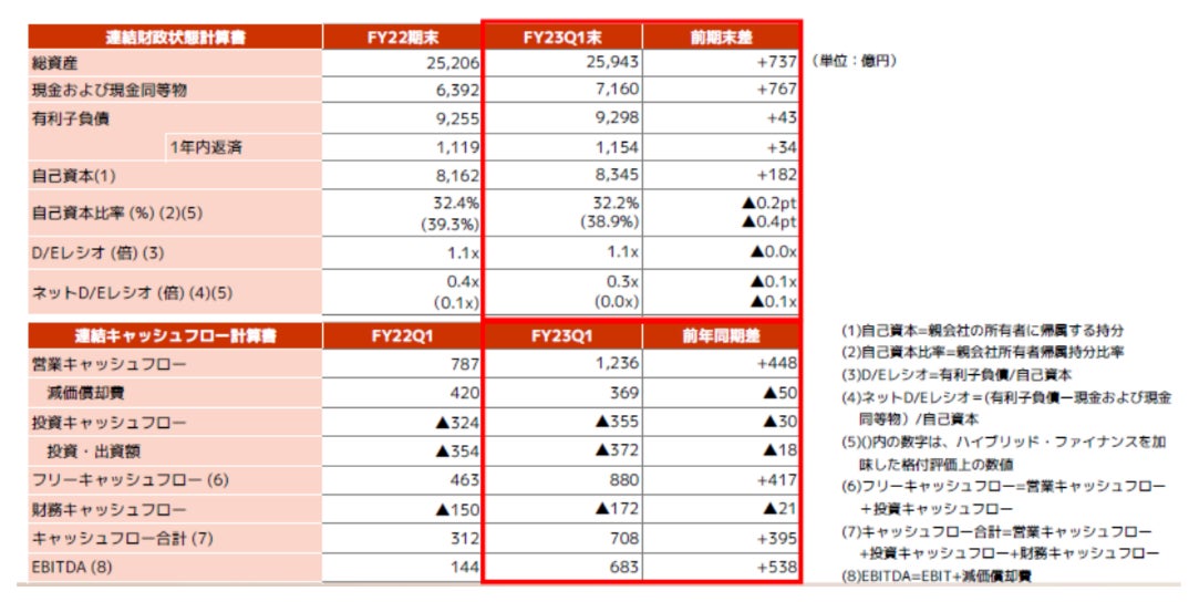 ・6月末の現金および現金同等物は7,160億円となり、未使用のコミットメントライン1,500億円を含め、十分な手元流動性を確保しています。なお、コミットメントラインについてはコロナ禍で増額しておりましたが、業績およびキャッシュ・フロー状況の改善を踏まえ6月30日に減額しております。