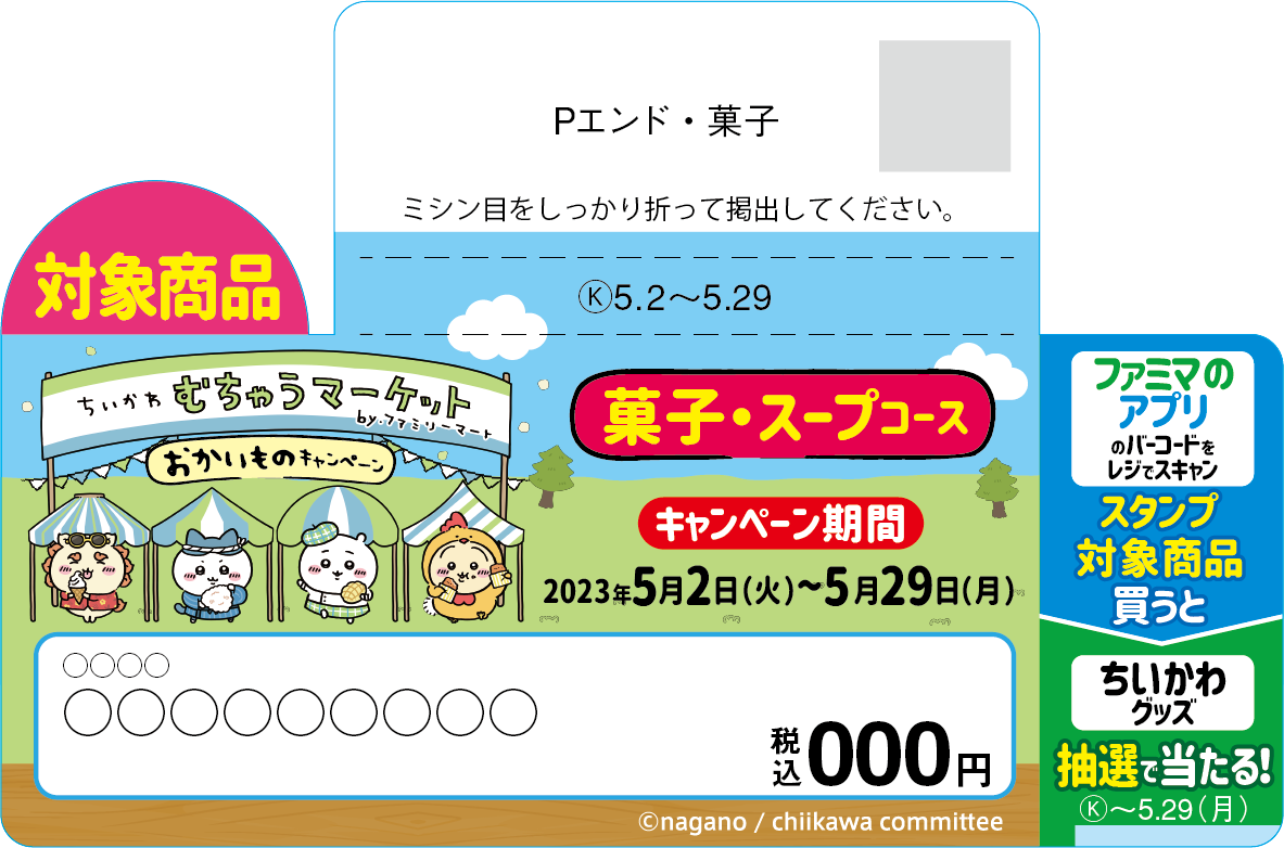 このたび、ちいかわたちとファミリーマートでのお買い物をお楽しみいただける「むちゃうマーケット おかいものキャンペーン」を実施いたします。