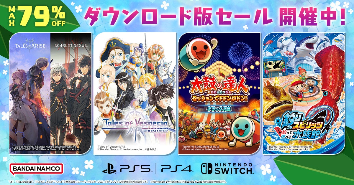 バンダイナムコエンターテインメント『ダウンロード版セール』開催中「Tales of ARISE + SCARLET NEXUS バンドル」や「釣りスピリッツ 釣って遊べる水族館」等最大79%OFF!