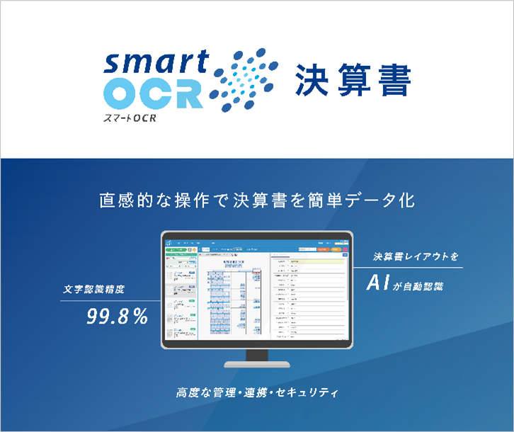 特に決算書は、書式が統一されていない非定型帳票であり、OCR処理を行う帳票としては難易度が高いものですが、「スマートOCR®」では高精度な文字読み取りが期待できます。
