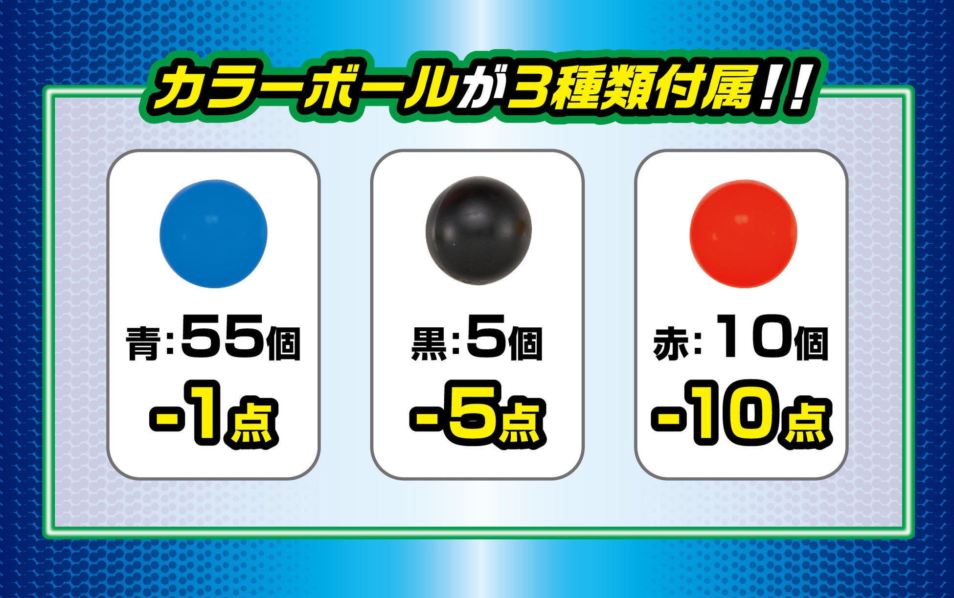 ●初の3色カラーボール:青(-1点)、黒(-5点)、赤(-10点)の3種類が付属。戦略性がアップ!