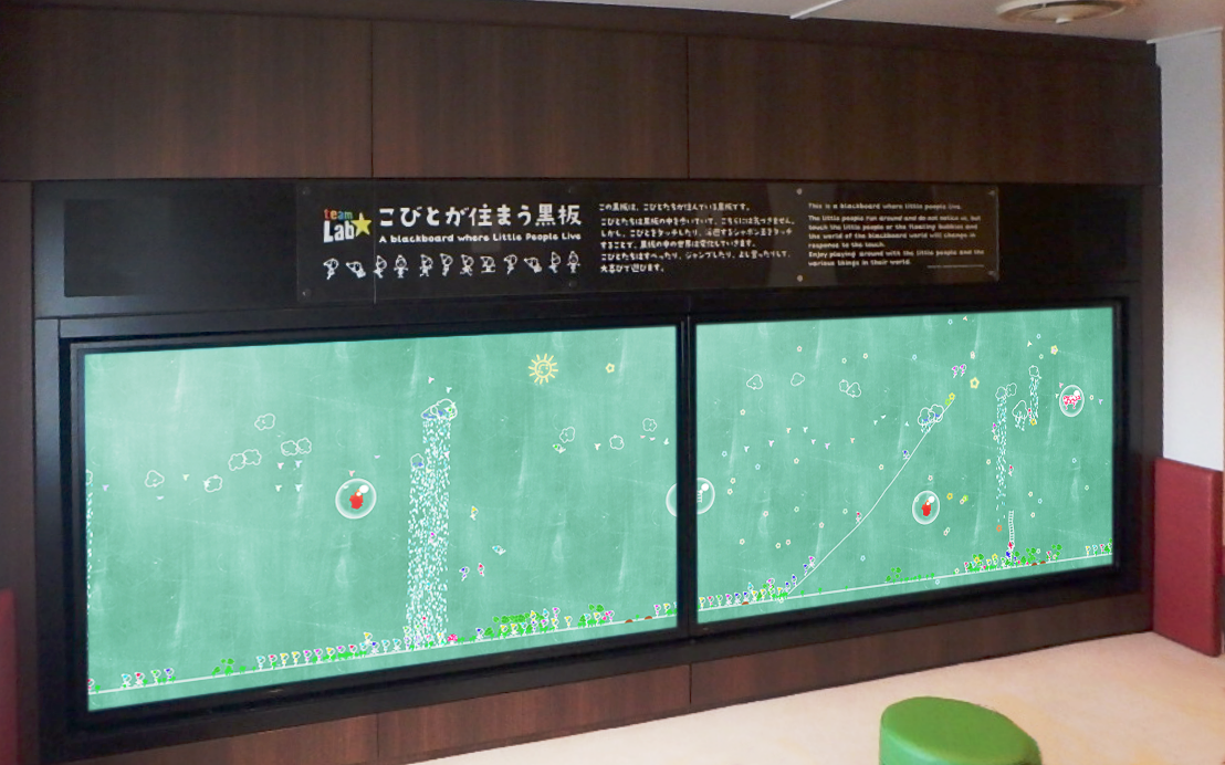 チームラボ、宮崎カーフェリーの新船「フェリーろっこう」のキッズスペースに、タッチしたり線を引くとインタラクティブに世界が変化する「こびとが住まう黒板」を常設展示。10月4日(火)から。
