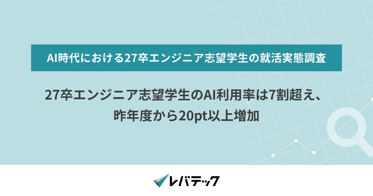 「日本を、IT先進国に。」をビジョンに掲げるレバテック株式会社( https://levtech.jp/ ) は、2027年3月卒業予定のエンジニア職志望学生144名を対象に、就活意識・実態調査を実施しました。本リリースでは一部を抜粋し、お知らせいたします。