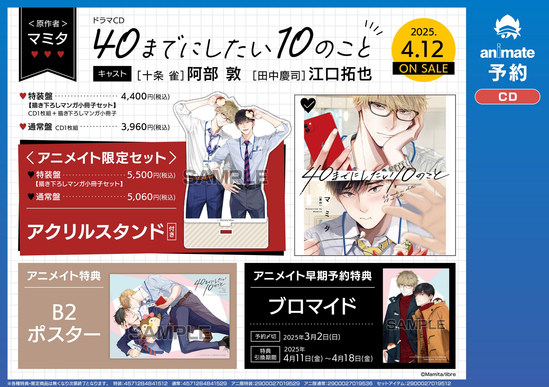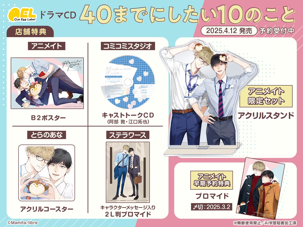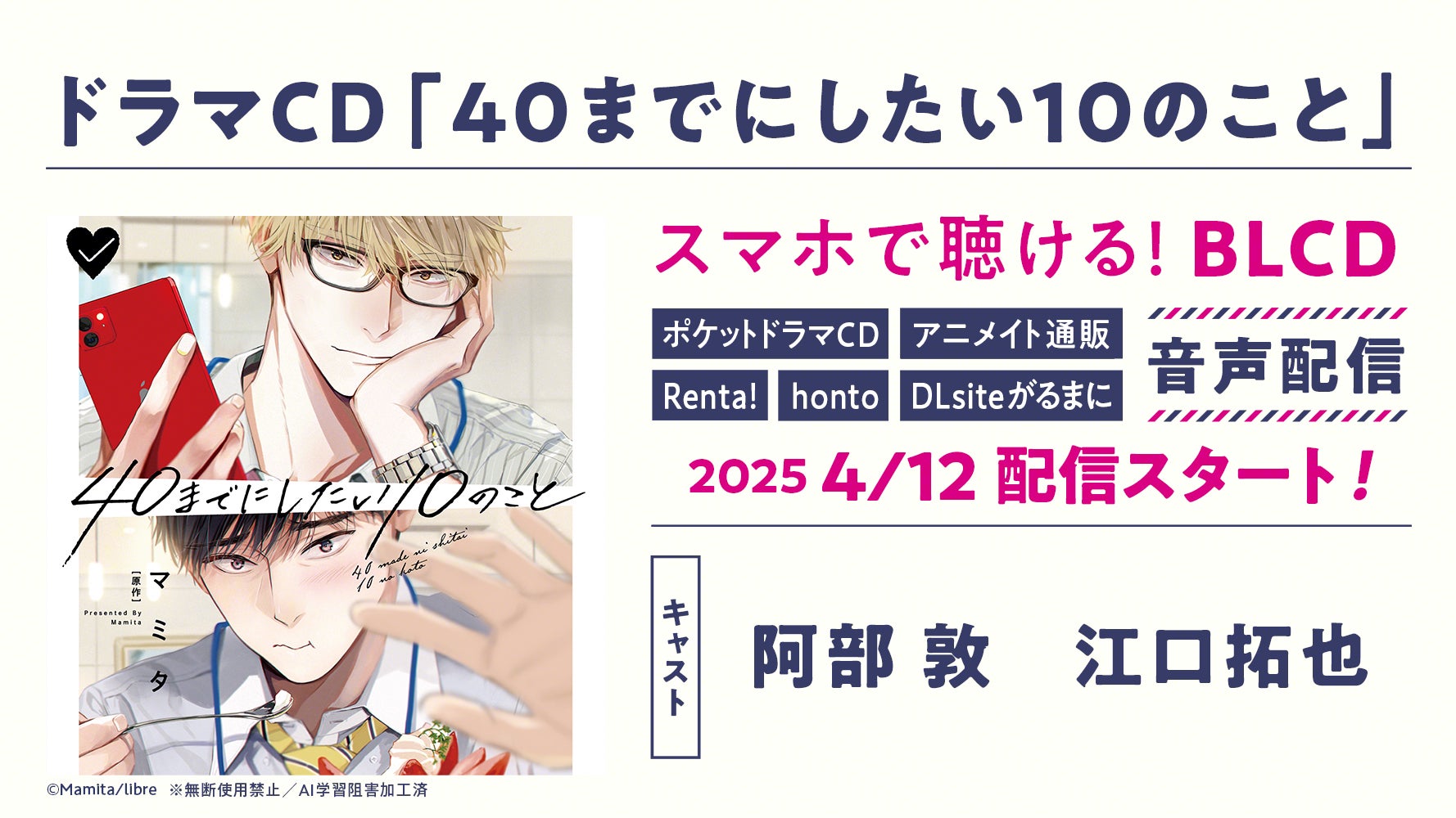 大人気BLコミックス「40までにしたい10のこと」のドラマCDが、2025年4月12日(慶司の誕生日)に発売&配信決定!