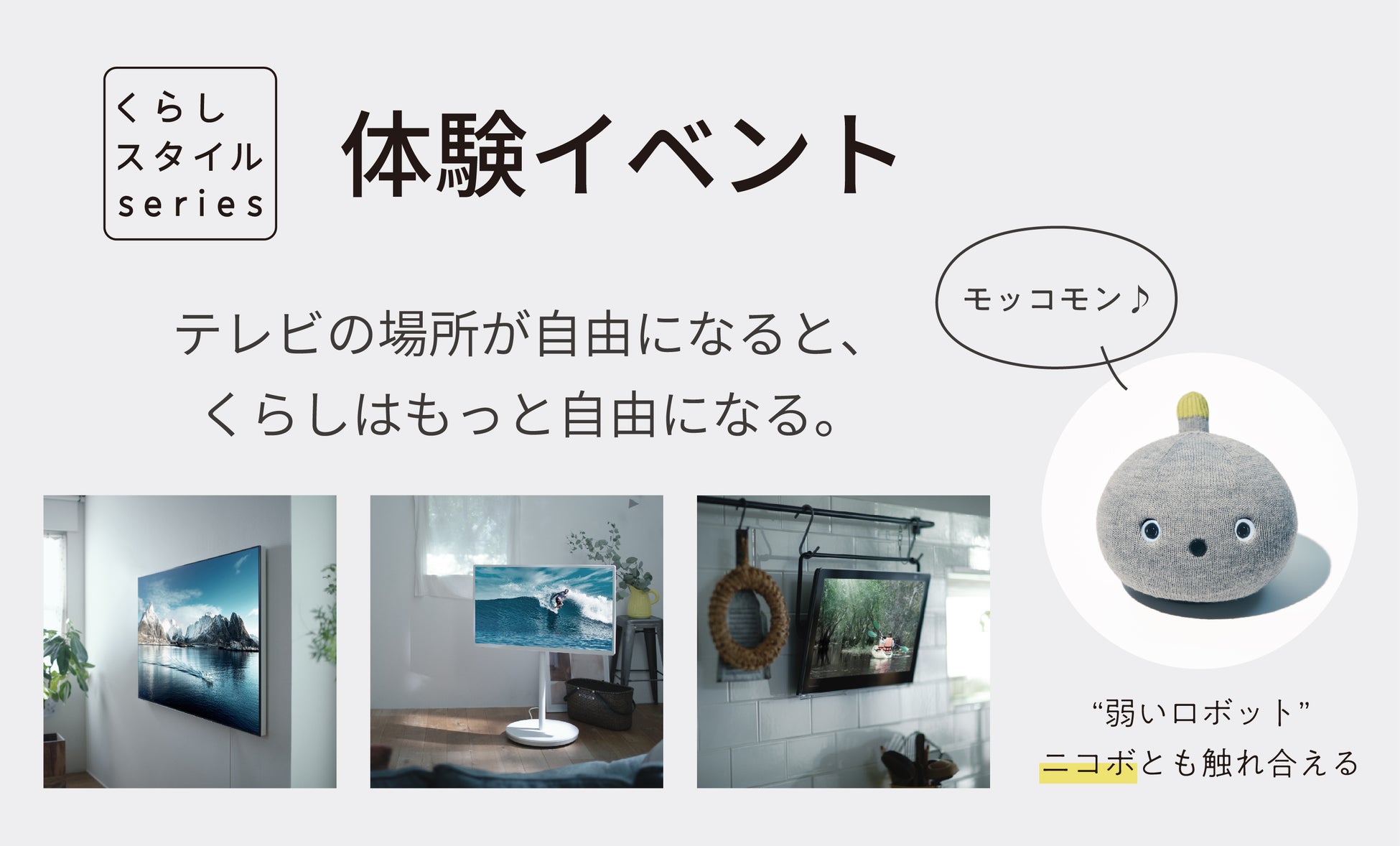 新生活シーズンに向けて、置き場所を自由にできる新しいテレビ「くらしスタイルシリーズ」体験イベントを大阪・兵庫4カ所で実施。” 弱いロボット”NICOBO(ニコボ)と触れ合えるコーナーも