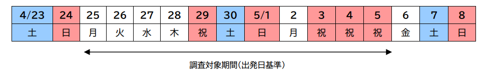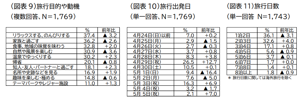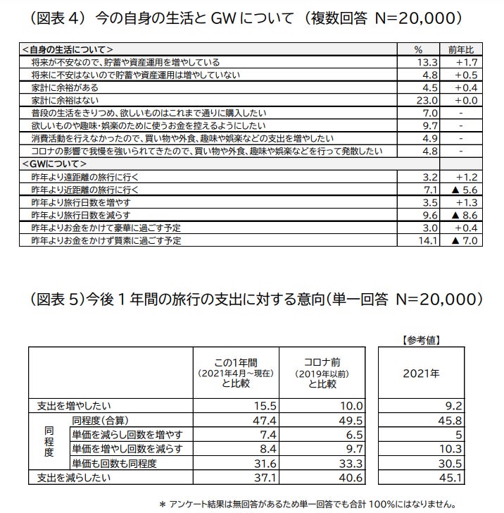 調査内容: 2022年4月25日~5月5日に実施する1泊以上の旅行(商用、業務等の出張旅行は除く)