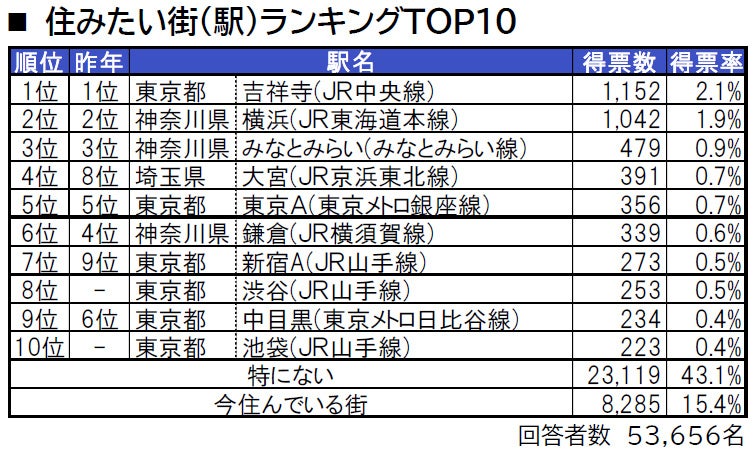 ■住みたい街(駅)ランキングトップは、5年連続で吉祥寺