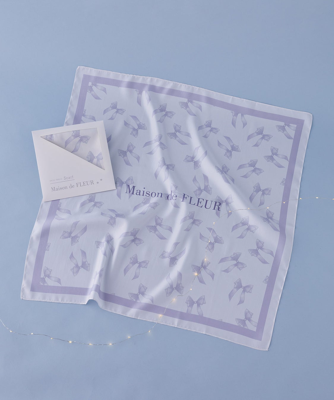 今回『Holiday Collection』の発売を記念して、全国のMaison de FLEUR店舗および「STRIPE CLUB」にて税込み11,000円以上をお買い上げのお客様へ先着で「オリジナルリボン柄スカーフ」をプレゼントいたします。Maison de FLEURから贈るプチギフトをぜひお楽しみください。