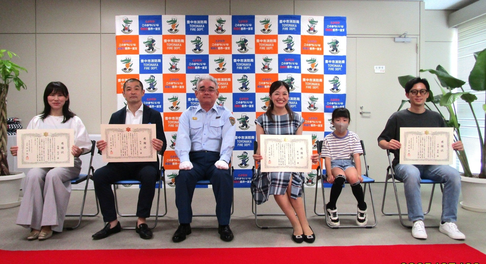 令和7年4月12日(土)、寺内2丁目の路上で発生した救急事案において、現場に居合わせた4人の市民が連携し、心肺停止の81歳男性を救護しました。4人は、119番通報、心臓マッサージ、AEDの操作などを役割分担し、救急隊が到着するまでの適切な応急手当を実施。この迅速な対応が男性の命を救いました。豊中市新千里消防署は、この勇気のある救助活動に敬意を表し感謝状を贈呈しました。