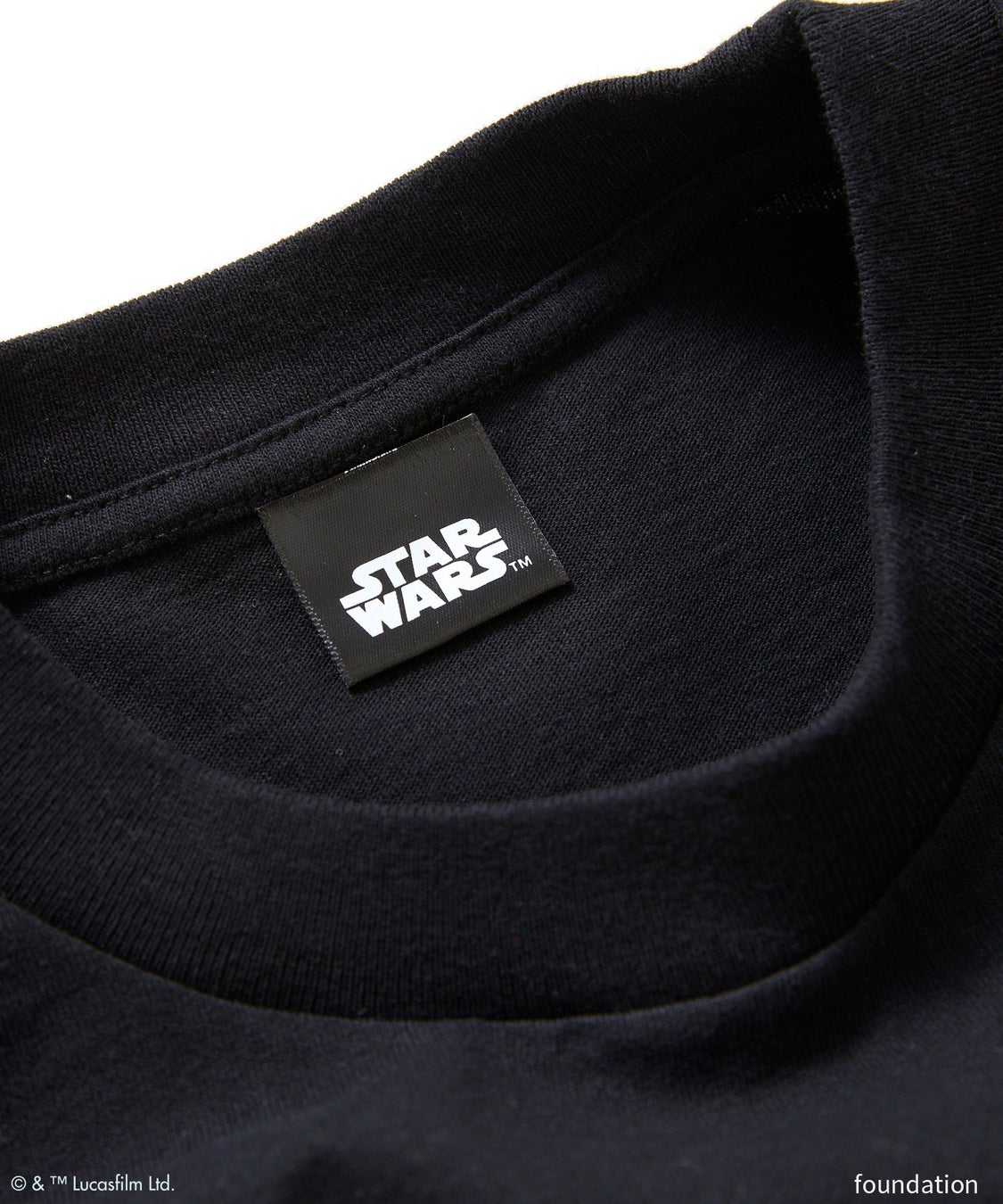 『スター・ウォーズ:イウォーク物語』より、プロントはイウォークの「ウィケット」、バックには「ウィケット」と「ニーサ」がプリントされた異色のデザイン。首元と袖口がネイビーのリンガーTにすることで、レトロな雰囲気を醸し出すデザインになっている。