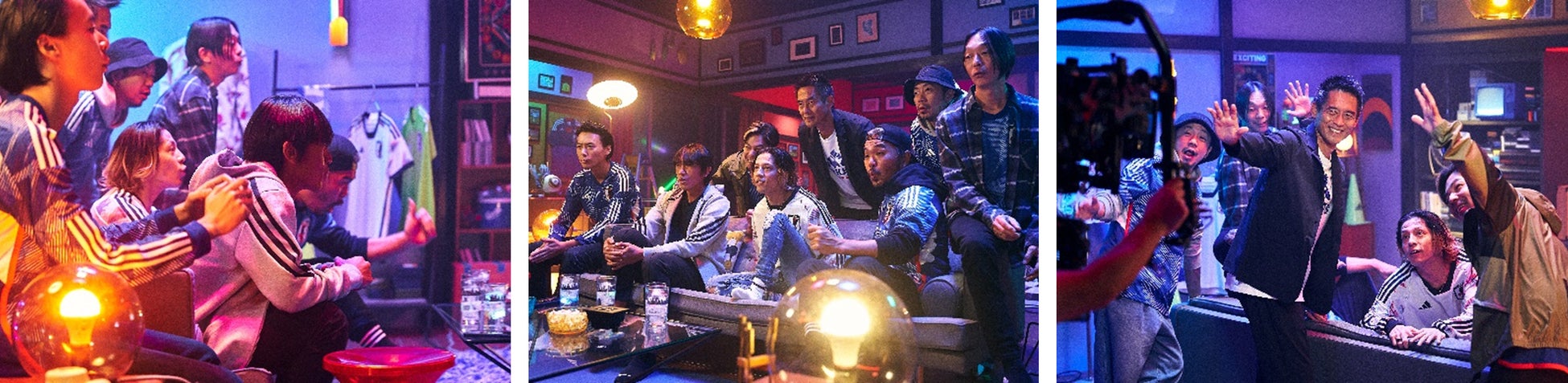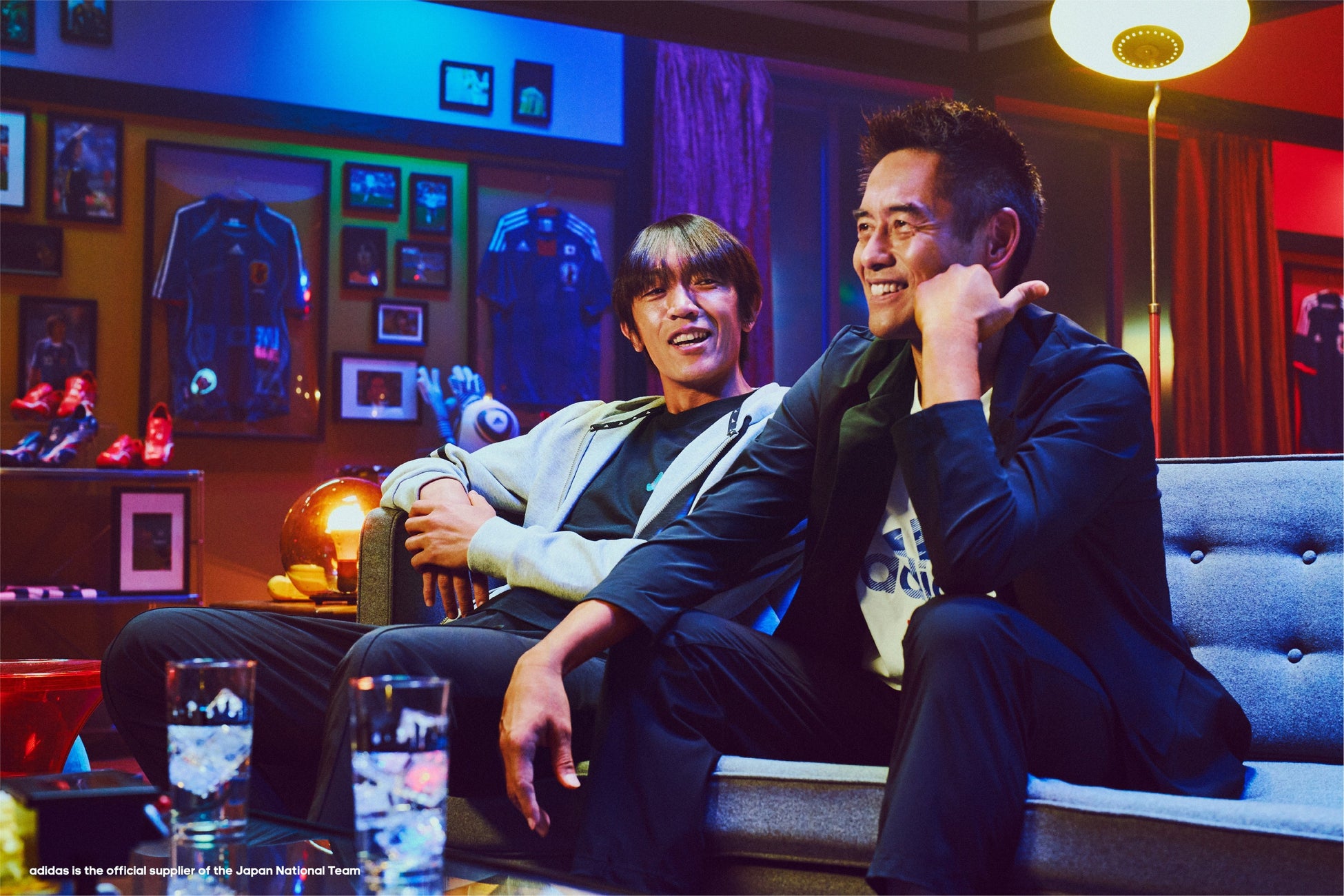 そして本日より公開する「Japan Football Family Reunion(ジャパン フットボール ファミリー リユニオン)」では、中村 俊輔や川口 能活、槙野 智章といった、ワールドカップの舞台でサッカー日本代表の歴史を築き上げたアスリートたちが、2002年・2010年のワールドカップに向けたテレビ局テーマソングを担ったロックバンドDragon Ash、2018年のワールドカップに向けたアディダスのブランドフィルムに参加したミュージシャンYONCE (Suchmos)など、カルチャーの側面からワールドカップを彩ってきたミュージシャンとの驚きの「再会」を果たします。また、なでしこジャパンで活躍する岩渕 真奈、長谷川 唯、長野 風花や、アディダス ブランドアンバサダーを務める渡辺 直美、そしてワールドカップに挑むSAMURAI BLUEのメンバーなども登場。過去、現在、未来の日本サッカーに関わる多彩な顔触れが、同じユニフォームの下でフットボール ファミリーとしてひとつになり、ワールドカップへ挑む選手たちへ全力でエールを送る姿が描かれています。また「The Family Reunion」と同様に、こちらのフィルムにも歴代のワールドカップや、不可能を可能にしてきたサッカー日本代表の活躍・歴史を思い出させるディテールが随所に詰め込まれています。