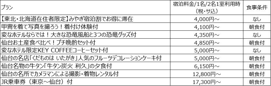 「変なホテル仙台 国分町」オリジナルの滞在プランを多数ご用意しております。