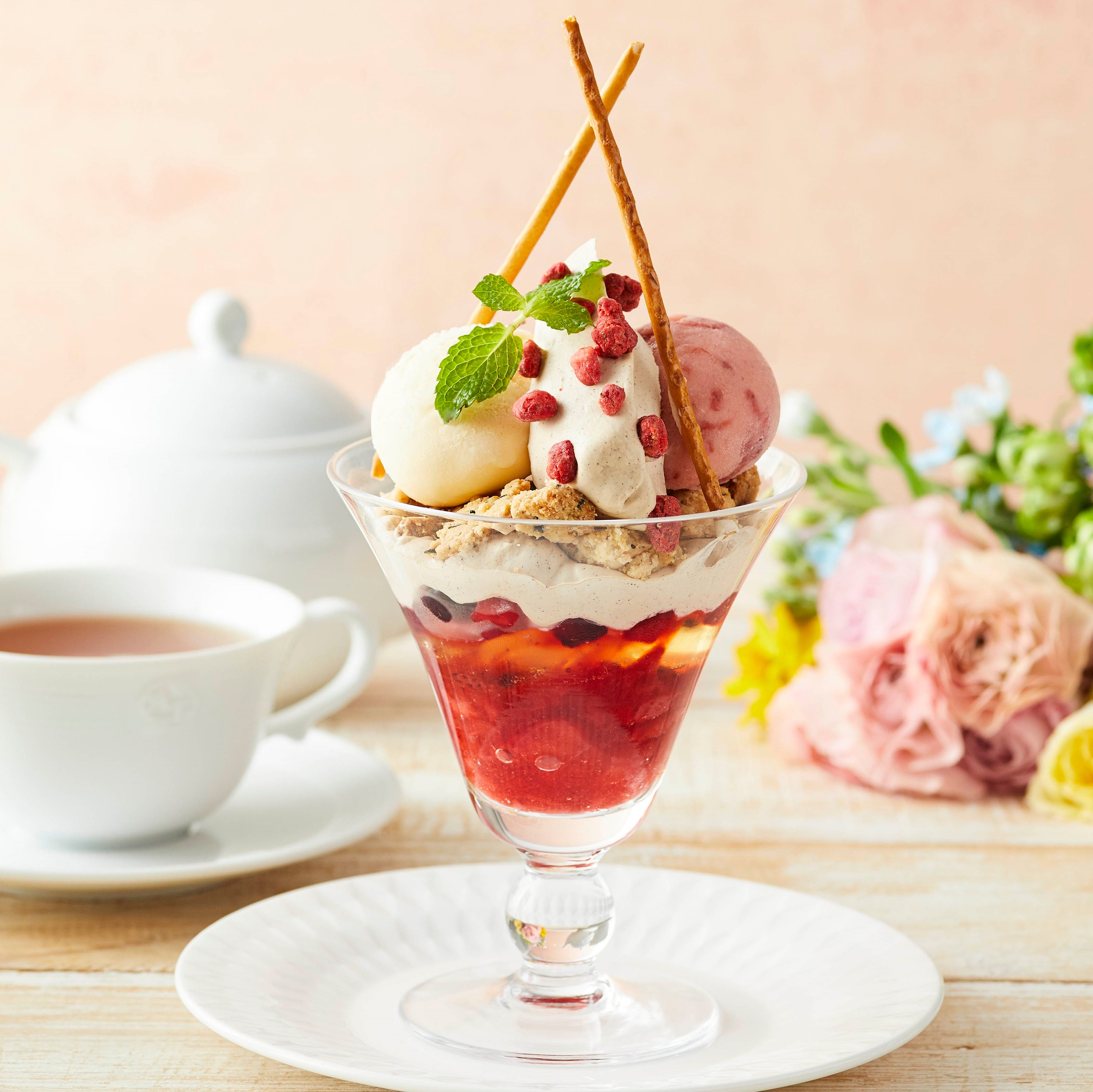 ティールームでお好みの紅茶と一緒に楽しめる、期間限定パフェ