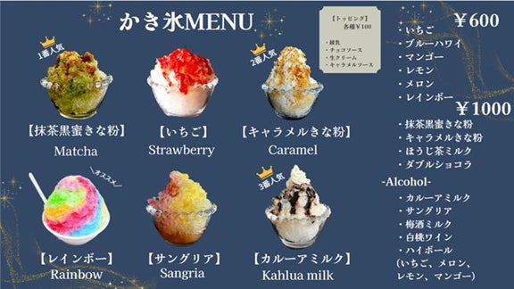 ■アルコール入りの“大人のかき氷”など、メニューの一部をご紹介