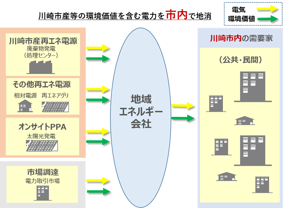 これは、昨年3月に川崎市が策定した「市域の再生可能エネルギー等利用拡大に向けた廃棄物発電有効活用計画」に示す脱炭素社会の実現に向けた先導的な取り組みや太陽光発電のPPA※1等による再生可能エネルギー電源の開発、エネルギーマネジメント技術を活用した取り組み等を推進していくものです。