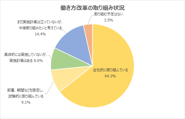「働き方改革」の実施について、企業の人事担当者にアンケートを実施しました。