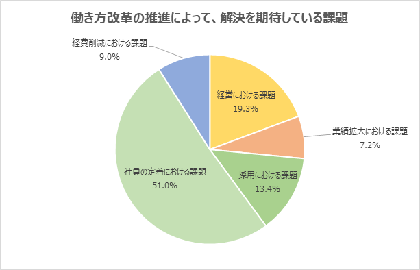 (3) 「働き方改革」の推進によって、解決を期待している課題は「社員の定着における課題」が最多