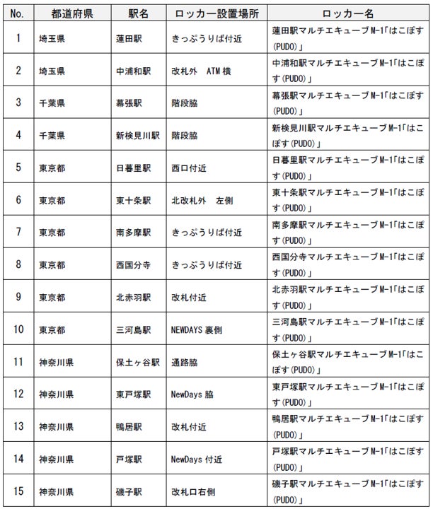 「物流の2024年問題」における、特に再配達負荷の低減を目的として、駅の多機能ロッカー「マルチエキューブ」でのゆうパックの受け取りサービスを、首都圏の15駅で2024年6月28日(金)から開始します。サービスを実施する駅は順次拡大予定であり、発送機能の実装も含めて検討を進めます。ロッカーの場所は、別紙1をご覧ください。