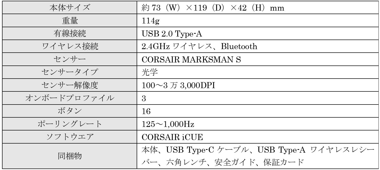 ・CORSAIR iCUEソフトウエアでRGB、DPI、ボタンマッピングなどのカスタマイズが可能