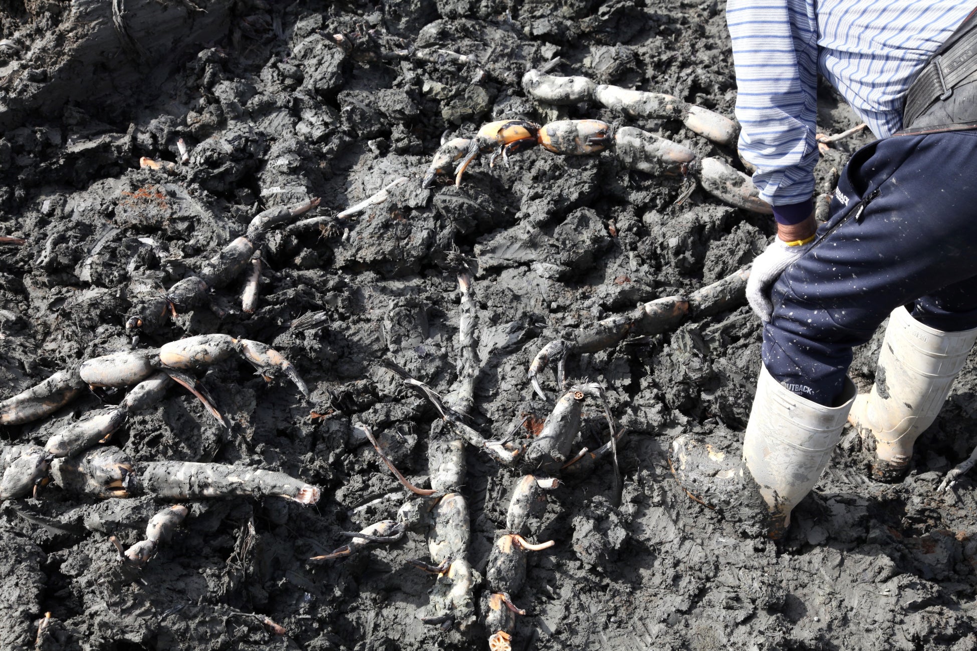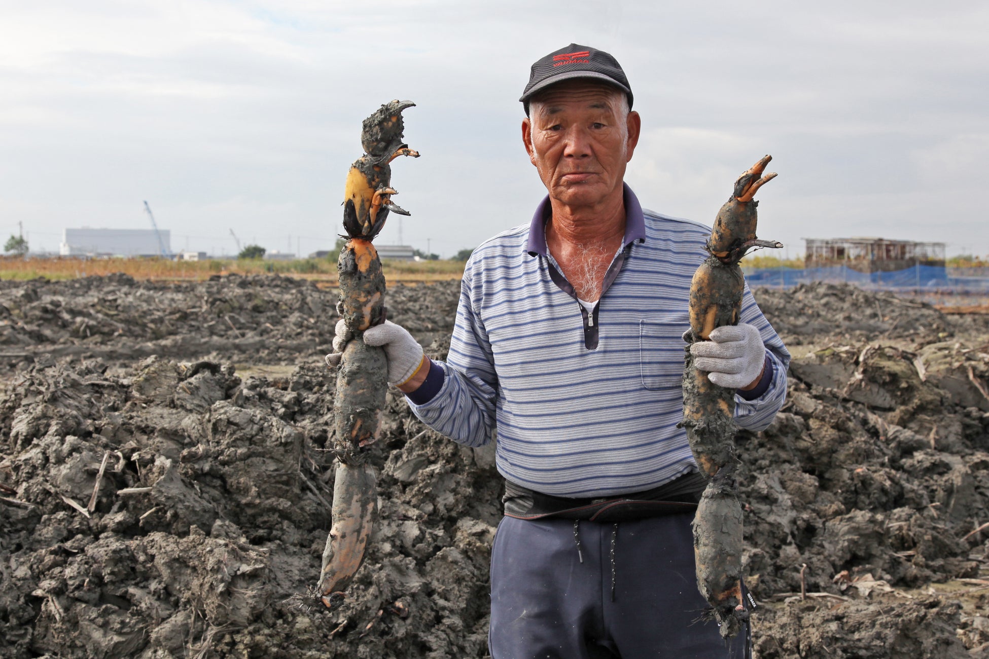 12代続くレンコン農家、竹村さんの畑でレクチャーを受けてレンコン掘り体験