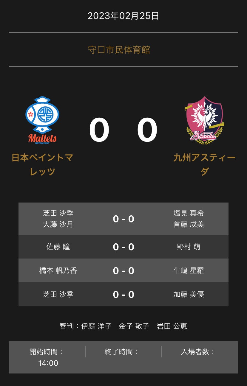 ノジマTリーグ 2022-2023シーズン 公式戦 2月25日開催 日本ペイントマレッツ vs 九州アスティーダ オーダー発表