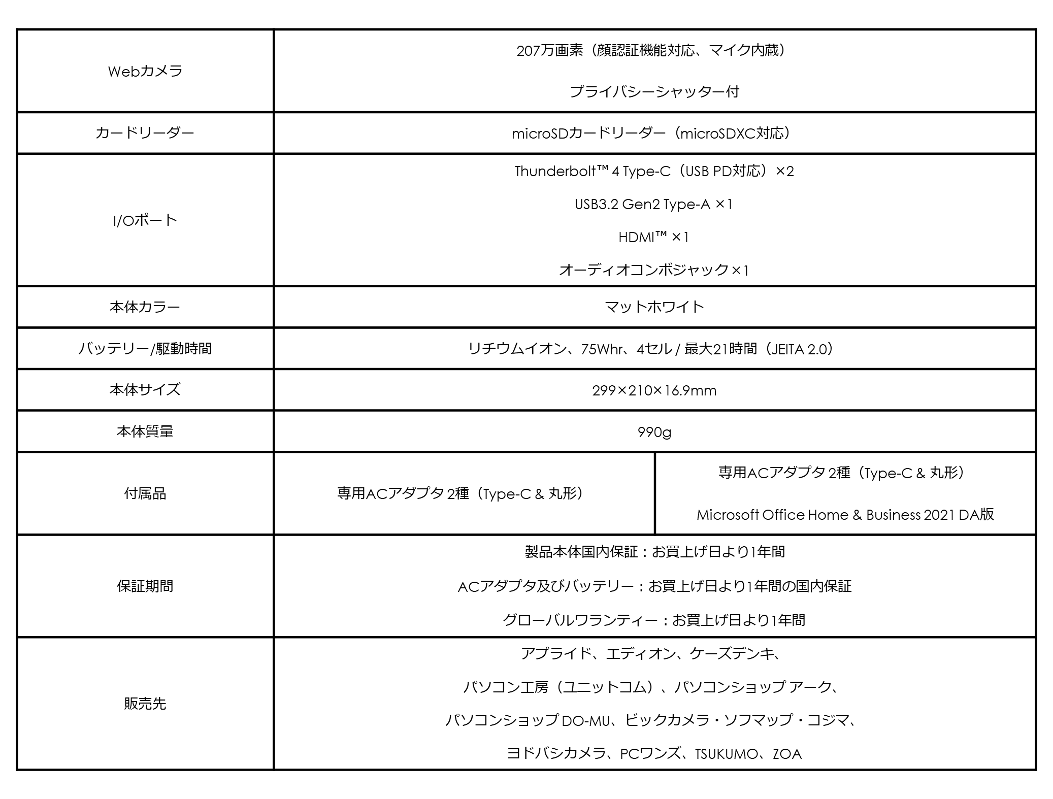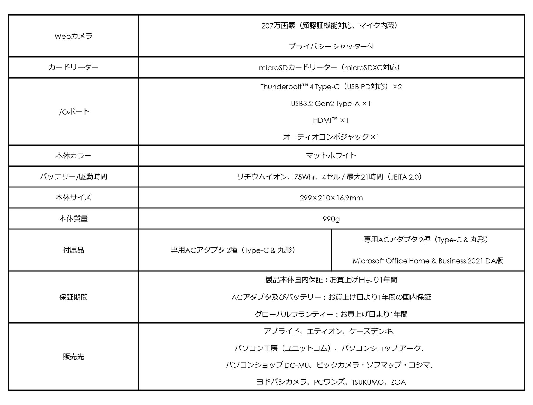 ●日本国内のビジネスユーザー向けに開発された軽さ1kg以下のビジネスノートPC