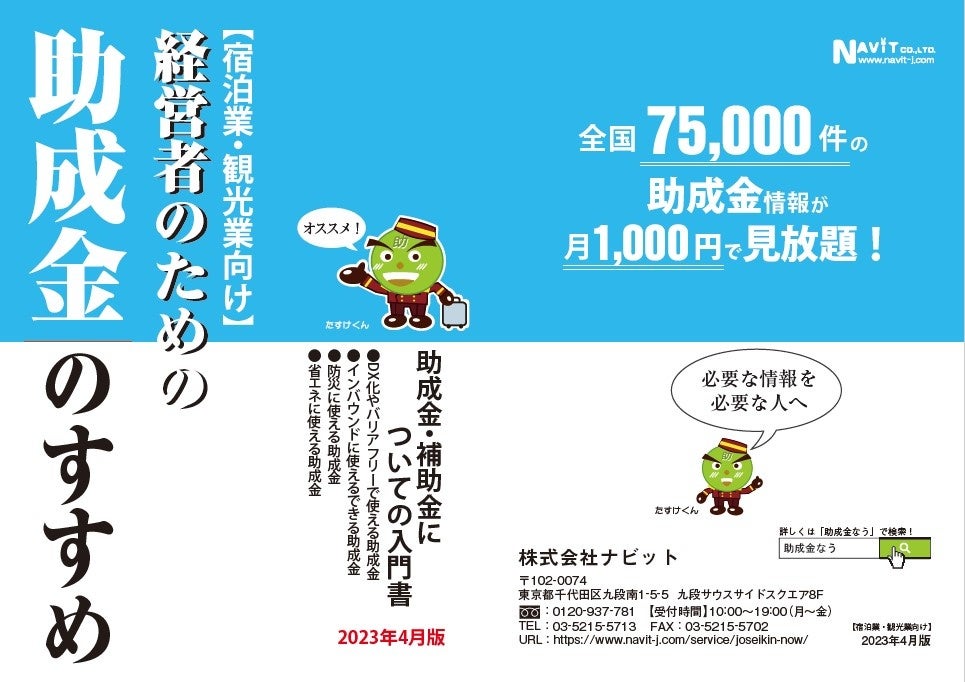 小冊子「宿泊業・観光業のための助成金のすすめ」登場