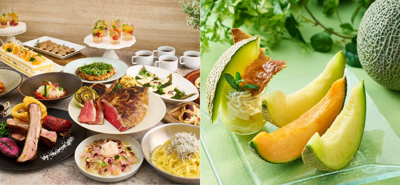 「関西のうまいもん、ええとこどり!グルメEXPO」(左)、メロン&こだますいか スイーツバイキング(右)