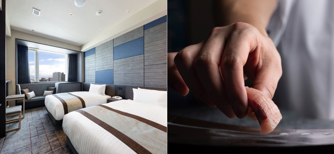 朝食では職人が目の前で握る寿司を食べ放題でお楽しみいただけるほか、最上階に位置するコンセプトフロア「富山」の一部客室からは立山連峰を望むことができます。ニューヨーク・タイムス紙「2025年に行くべき52か所」に選ばれた富山県を堪能いただく拠点としてお役立てください。