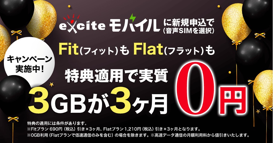 注意事項の詳細はキャンペーンページ(https://bb.excite.co.jp/exmb/campaign/)をご確認ください。