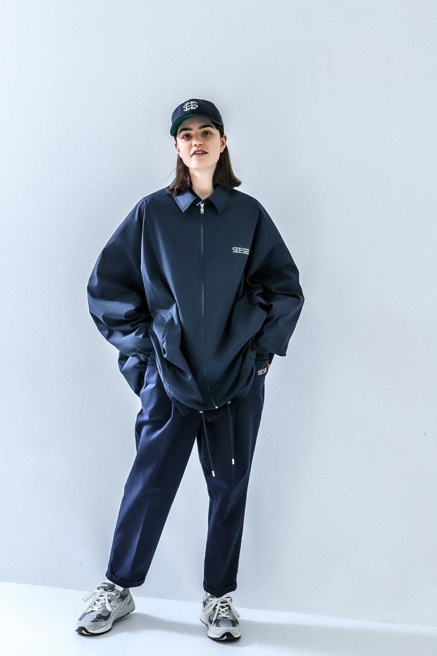 トラッドスタイルには欠かせないスウィングトップを SEE SEE のフィルターを通し、 素材にはナイロン 93%、PU7%、裏地はコットン 100%、また 5XL のワンサイズで仕上げました。 従来のスウィングトップの概念の壊すかのような、軽快さとリラックス感を出す事ができます。