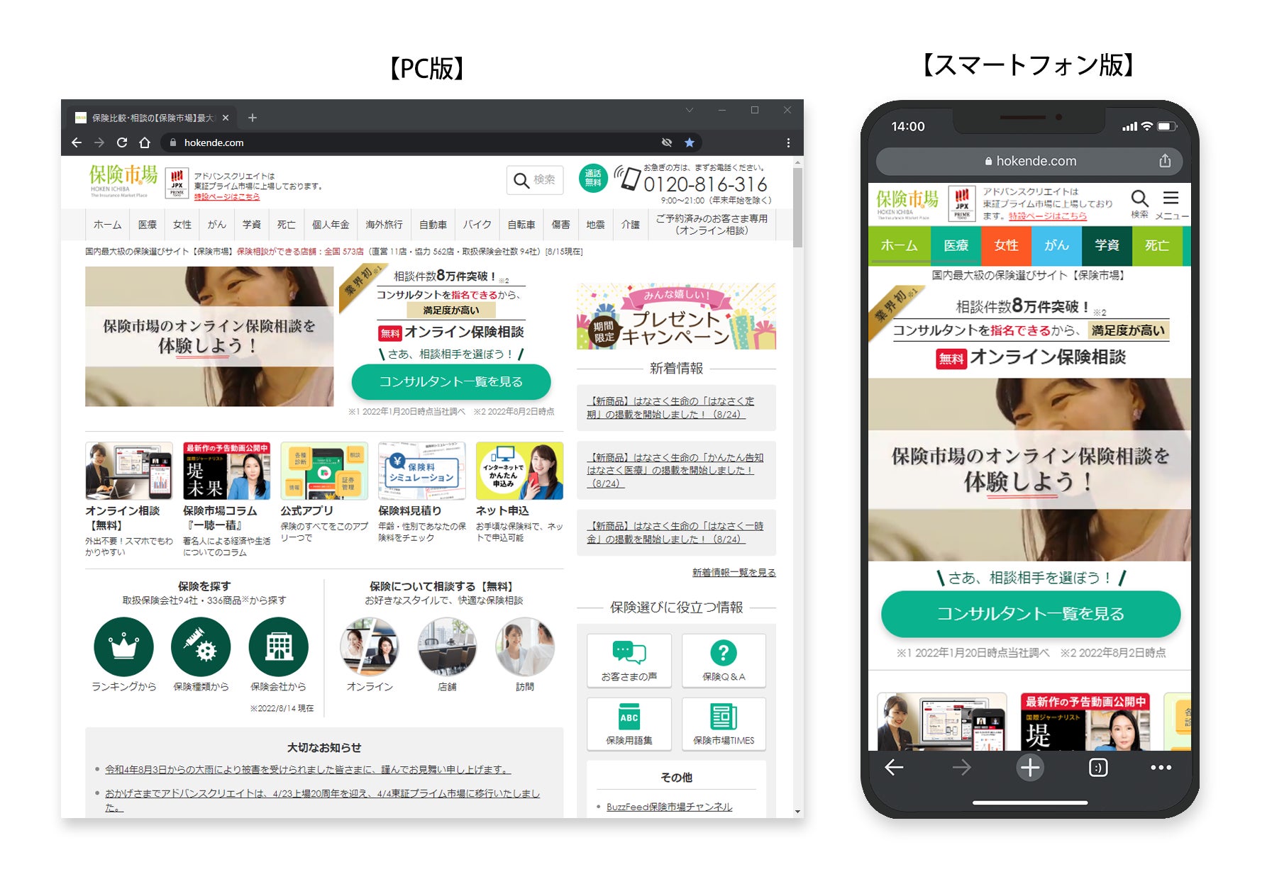 今後も、当社はWebマーケティングに主軸を置いた事業展開を進め、国内最大級の保険選びサイト「保険市場」において、ユーザビリティを向上させ、お客さまの体験価値を高めていくと共に、刻々と変わる消費者動向を先取りし、最先端のテクノロジーとWebマーケティングノウハウを駆使し、あらゆる保険の情報メディアサイトとしての進化を追求してまいります。